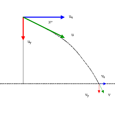 Q A plane fires a bullet with an initial velocity of 100m/s at an angle of 37 degrees below the horizontal. The bullet lands two seconds later. In the questions that follow, you may neglect air resistance and assume that g = 10 m/s/s.
